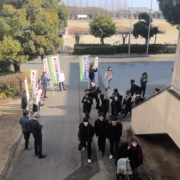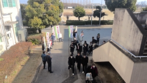1月17日(土)18日(日)と共通テストが実施されました。本校では前日の16日(金)に3年生に激励会を行いました。写真は受験生を3年学年団を中心に送り出している場面です。
